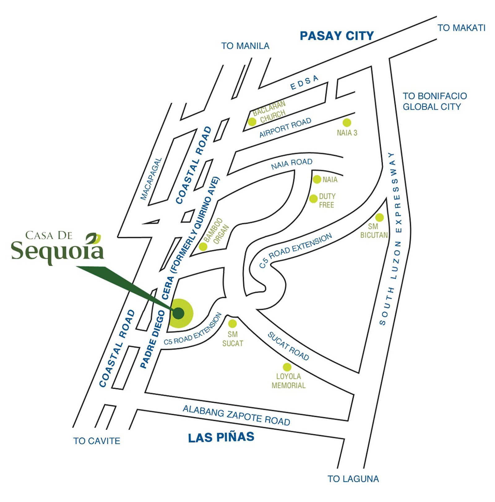 Its proximity to commercial areas, hospitals, schools, major thoroughfares like C-5 extension, Alabang-Zapote and Cavitex, and in the future, the LRT Line 1 Extension, makes its location convenient and accessible.