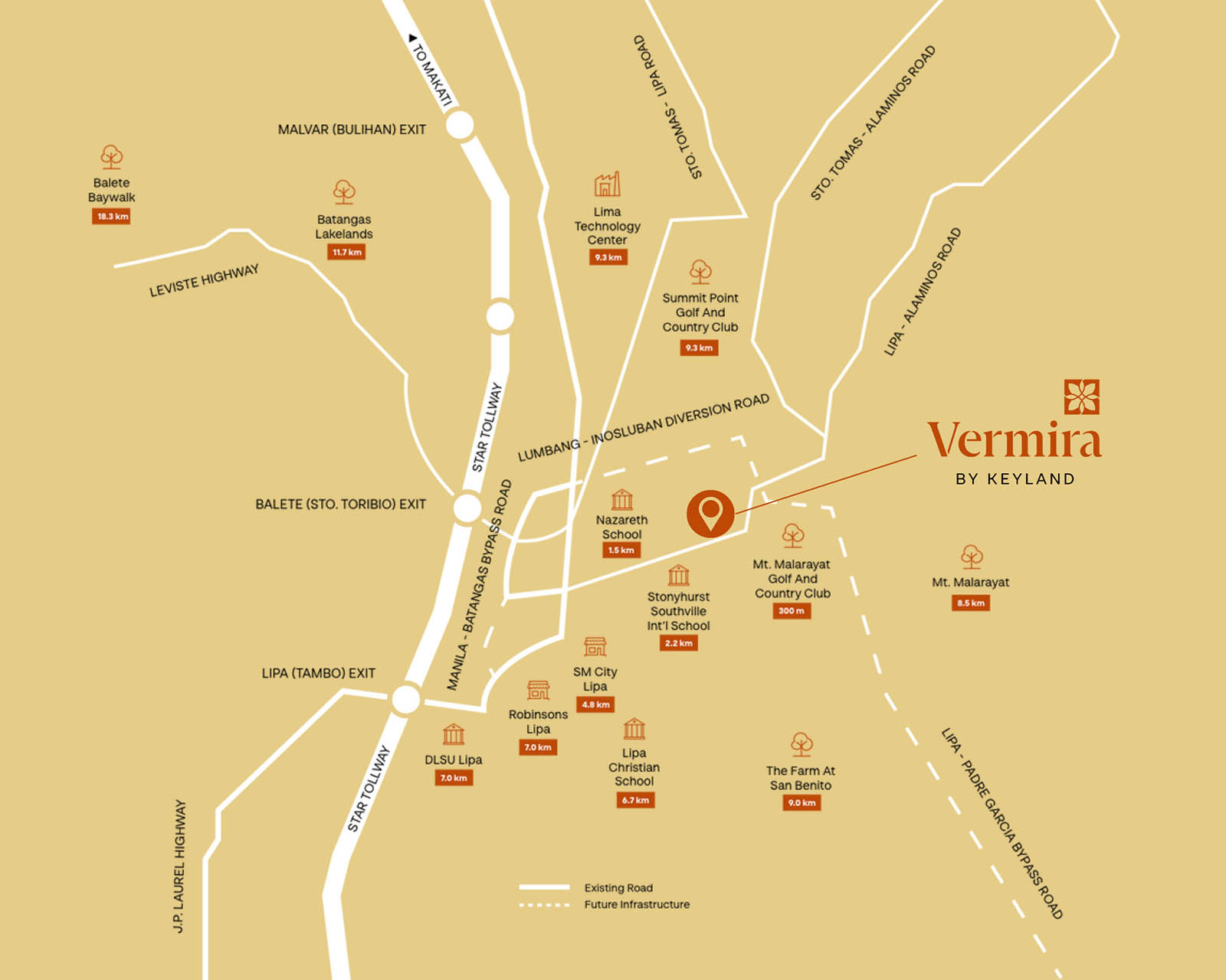 Vermira in Lipa, Batangas, is a serene residential community nestled amidst the lush landscapes of the region. Boasting an inviting ambiance and a harmonious blend of modern living and natural beauty, this village offers a tranquil escape from the bustling city life. With well-designed homes adorned by manicured gardens and tree-lined streets, Vermira provides its residents a sense of exclusivity and comfort. Its strategic location provides easy access to essential amenities, educational institutions, and commercial centers, making it an ideal haven for families seeking a peaceful yet convenient lifestyle in the heart of Batangas.
